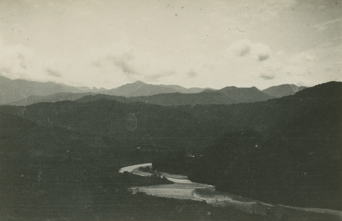 Fotografi från expedition till Peru 1920. Vy över bergslandskap och flod.