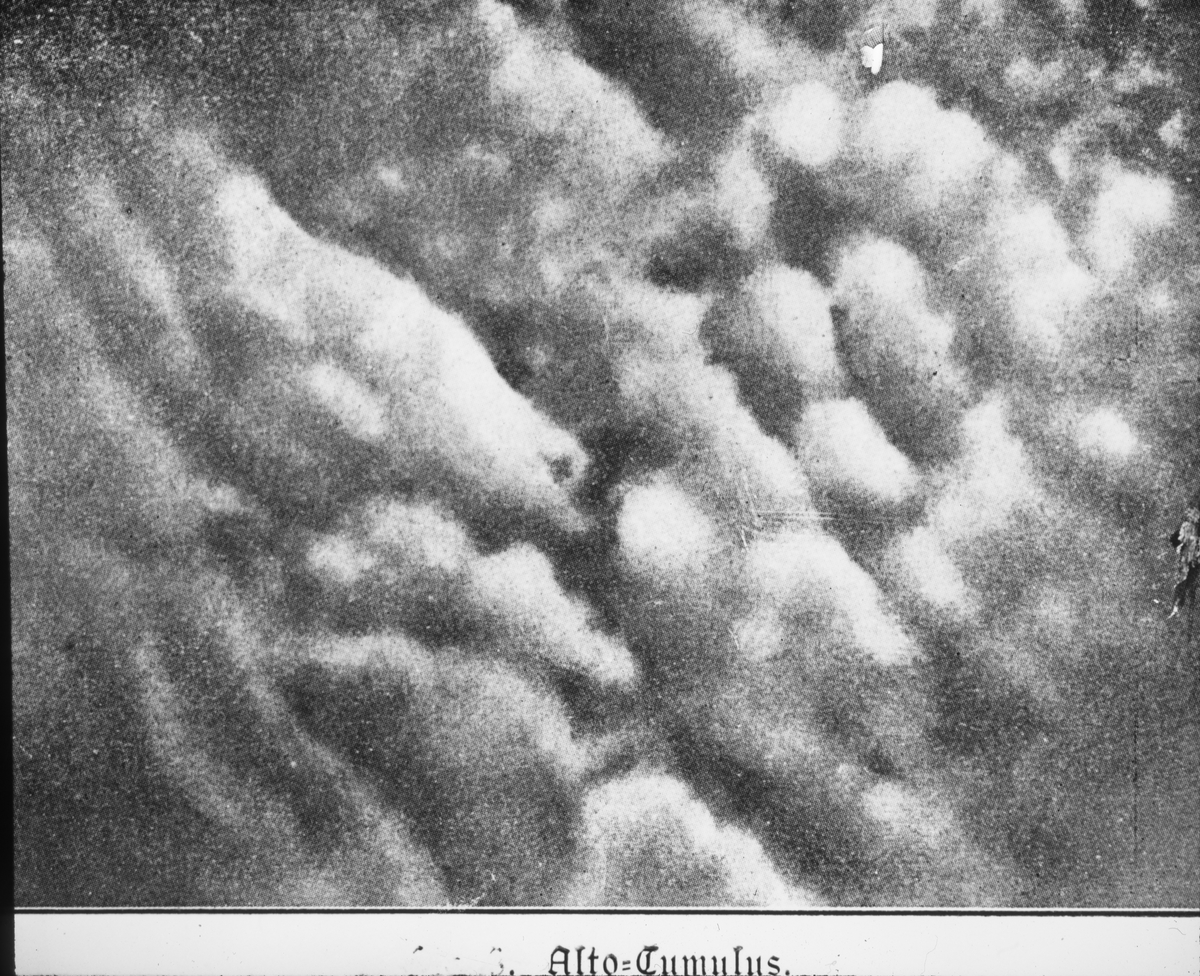 Skioptikonbild med motiv rörande olika typer av moln. Atto-Cumulus.
