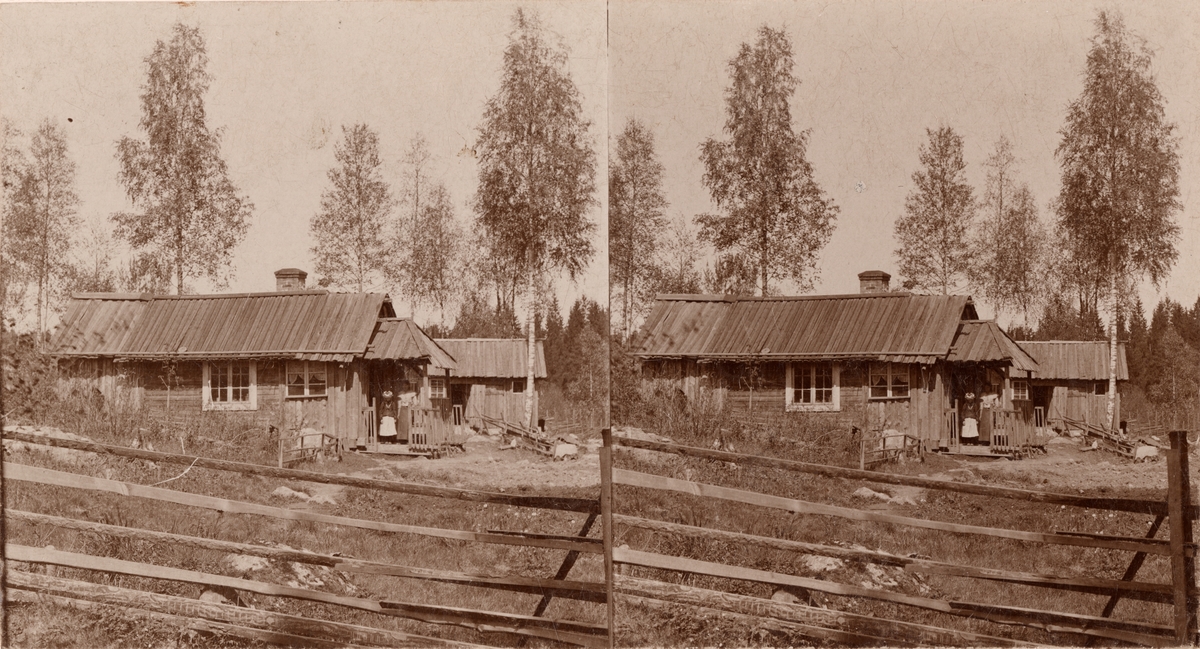 Stereobild. Arbetarbostad, Kohlsva Bruk, vid mejeriet.