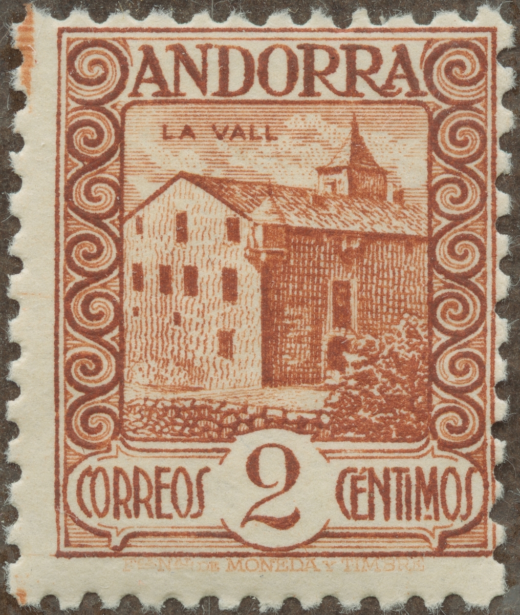 Frimärke från Spanska Andorra, 1937. Motiv av Slottet La Vall