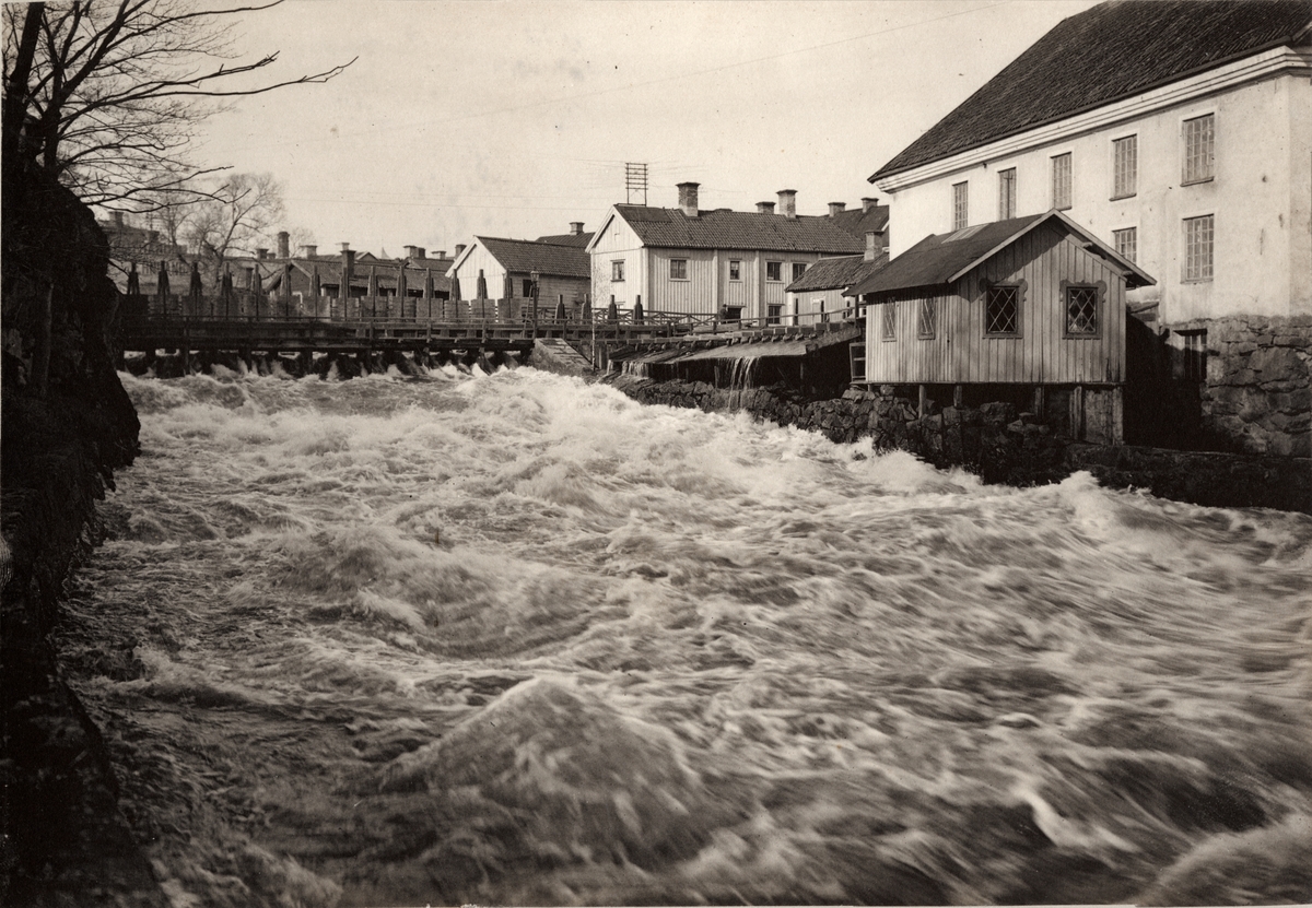Vattenfall i Torshälla. "Motiv från Södermanland". Foto inlämnat till 1898 års pristävlan för Svenska Turistföreningen.