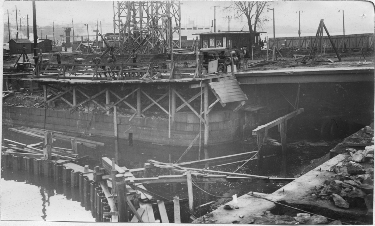 Byggandet av Slussen vid Södermalm, Stockholm.