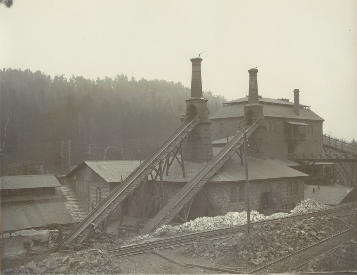 Boxholms Järnverk. Masugnar och rostugnar vid Glafvensfors omkring 1915.