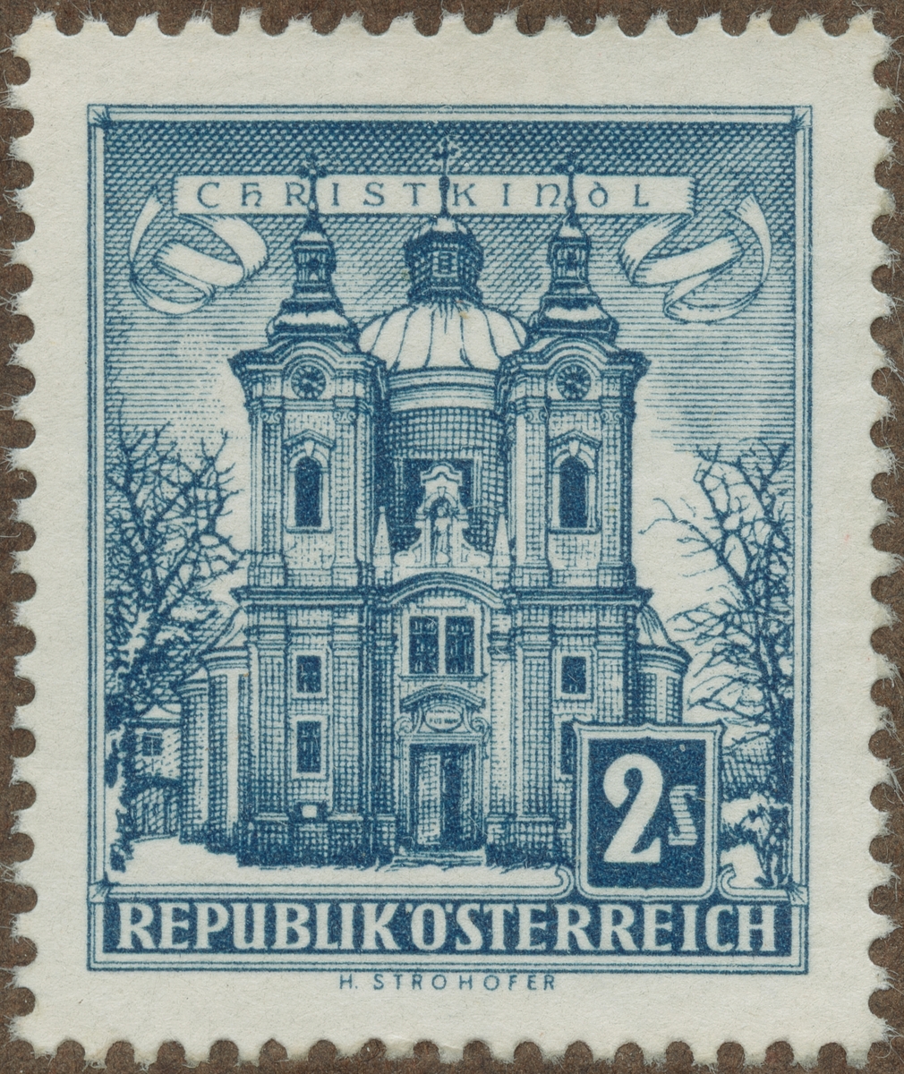 Frimärke från Österrike, 1945. Motiv av Kyrkan Christkindl - Steyr -