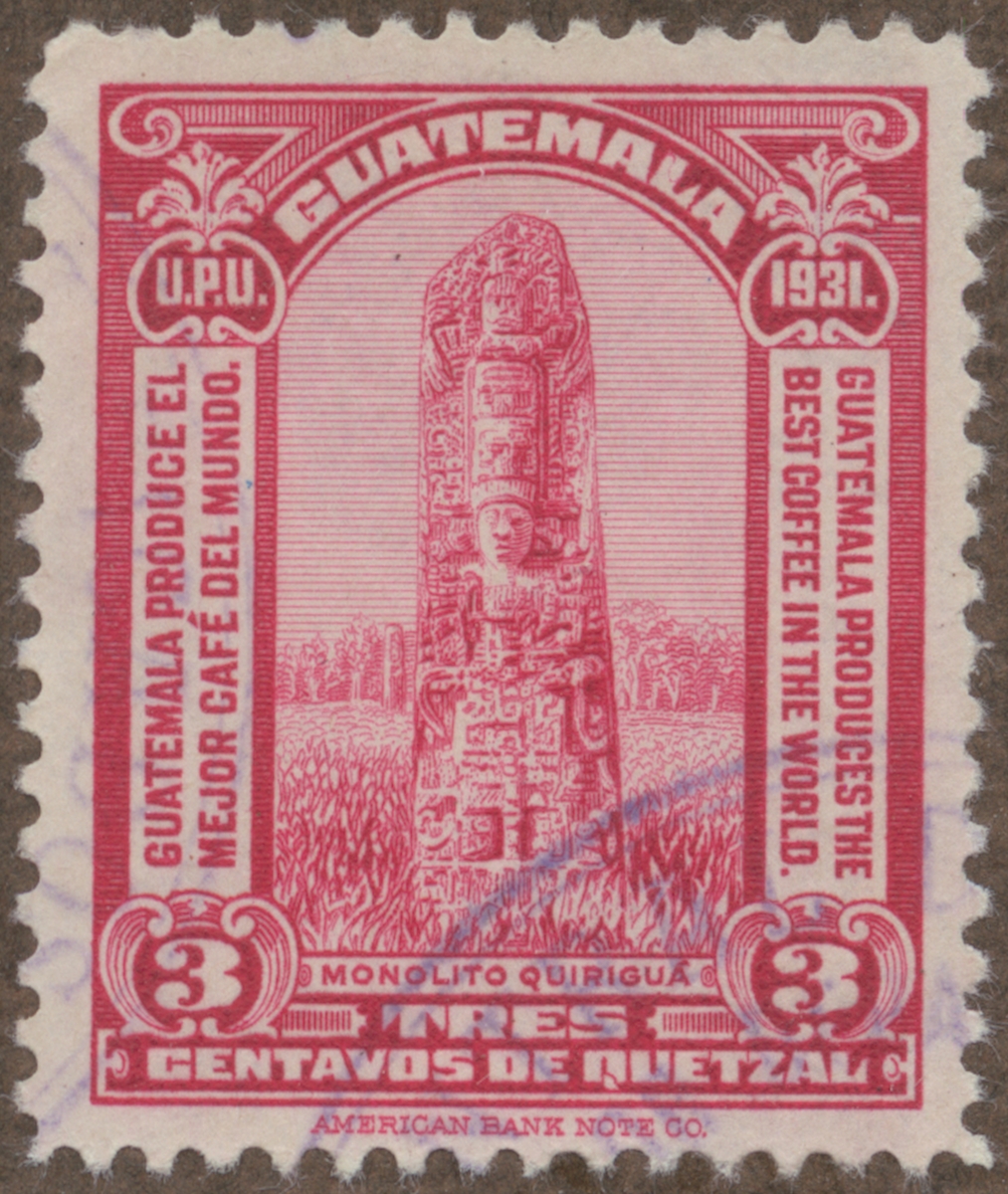 Frimärke från Guatemala, 1931. Motiv av Monoliten i Quirigua