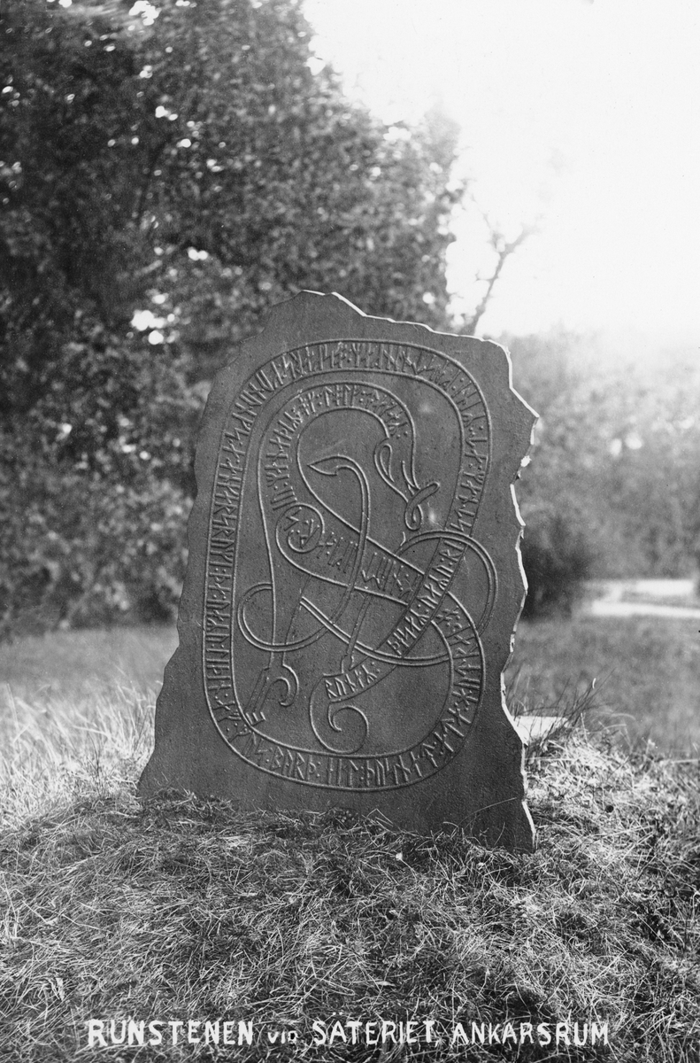 Gjuten runsten vid säteriet. Till minne av Konung Oscar II:s besök vid Ankarsrum d. 12/8 1890. 1 meter hög, 65 cm bred.
