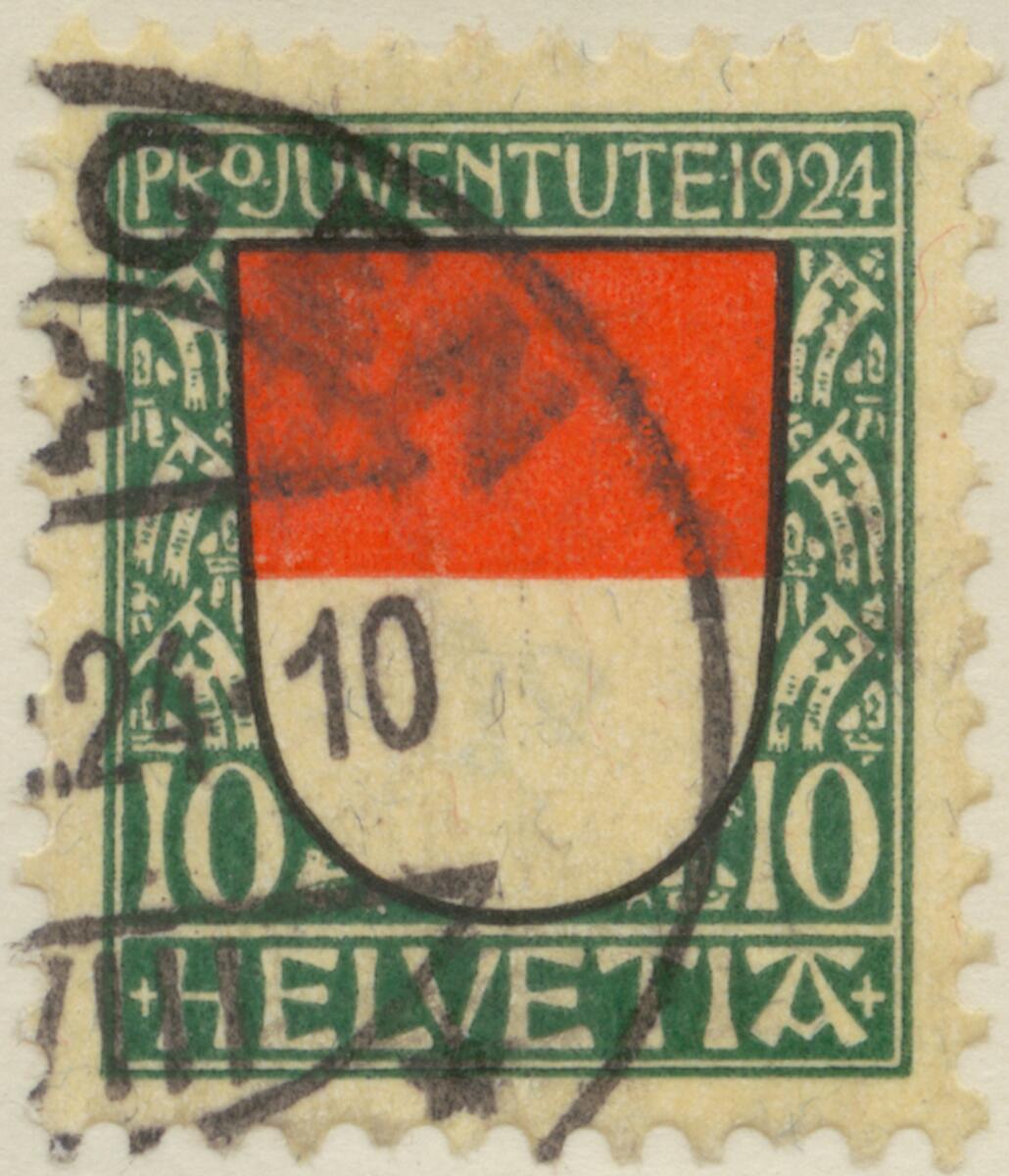 Frimärke från Schweiz, 1924. Motiv av Solothurns Vapen Pro Juventute 1924