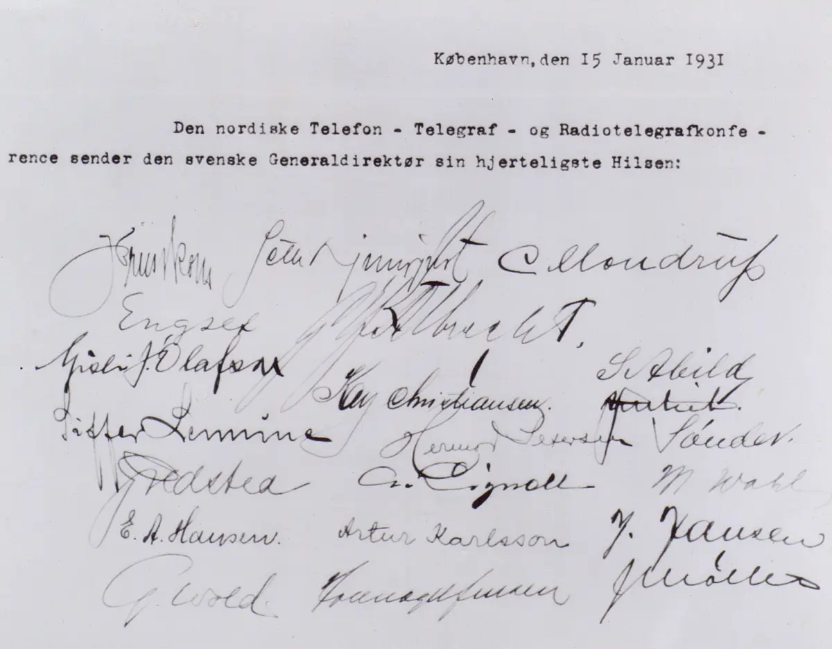 Nordiske Telefon- Telegraf- og Radiotelegrafkonference i Köbenhavn, 1931. Skänkt av G. Wold.