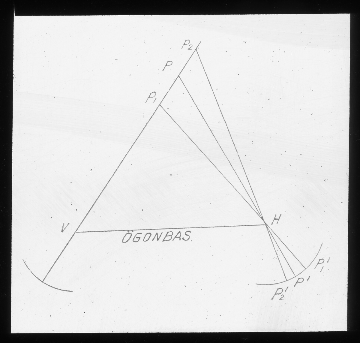 Bilden illustrerarkonvergensvinklarna VPH etc. där V och H äro resp. vänstra och högra ögat och P, P1,P2, föremålspunkter, vilka på högra ögats näthinna ger anledning till bildpunkterna P1', P' och P2' resp.