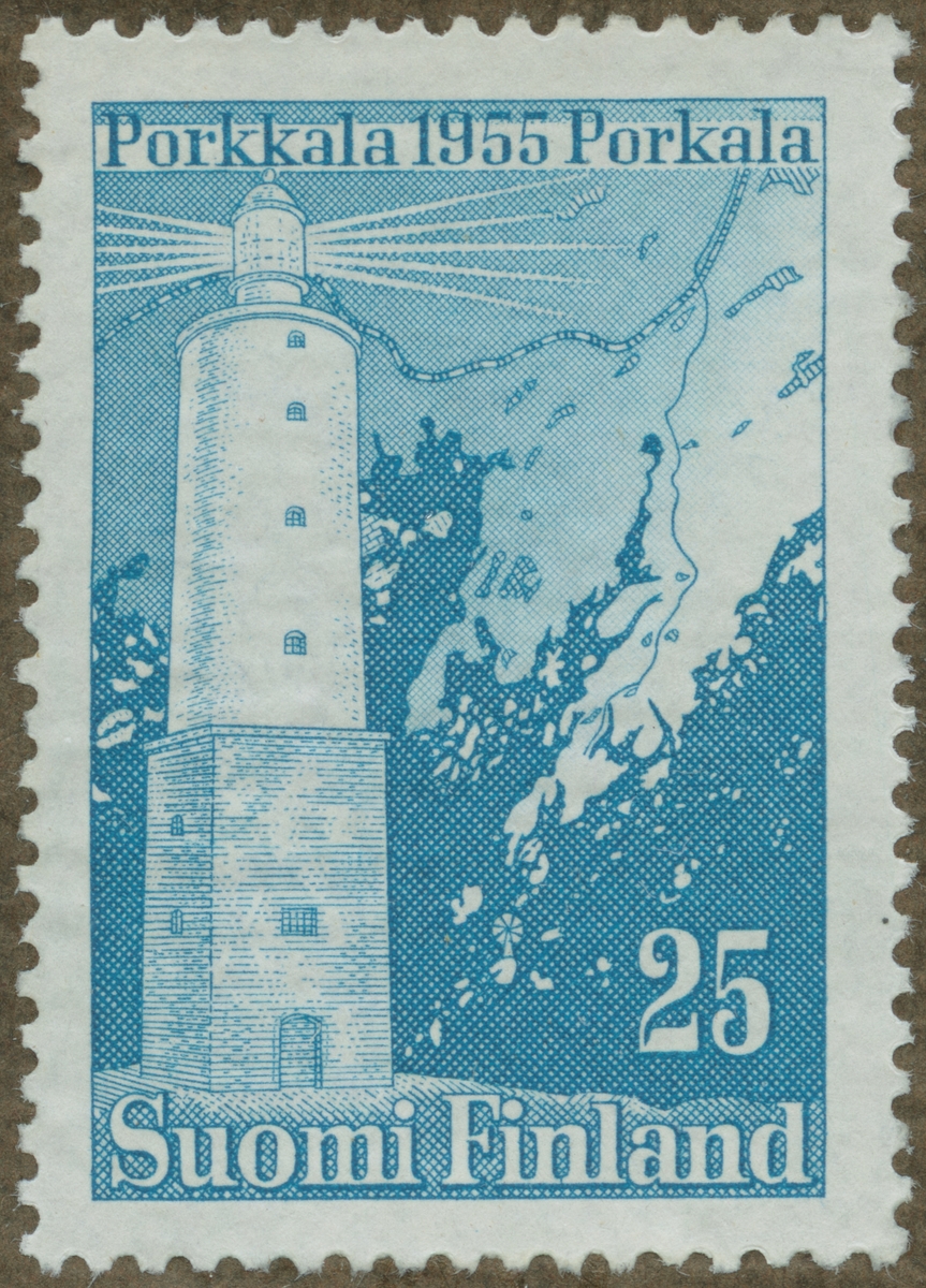 Frimärke från Finland, 1955. Motiv av Fyren på Porkalahalvön Karta
