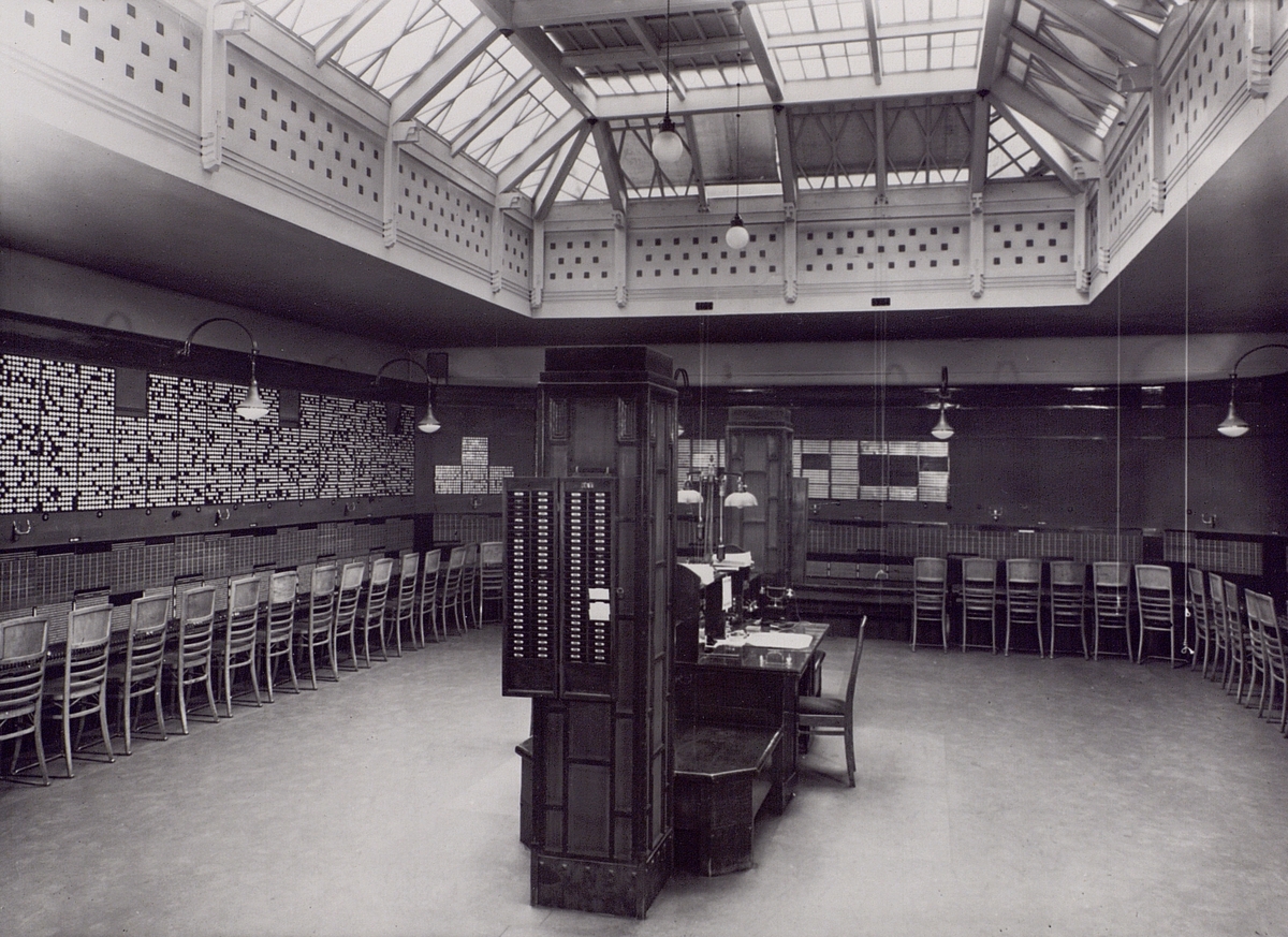 Sibyllegatan 24. Östermalms telefonstation. Apparatsalen. Mauell station raserad 1933. Vid rivningen hade stationen 8000 abonnenter.