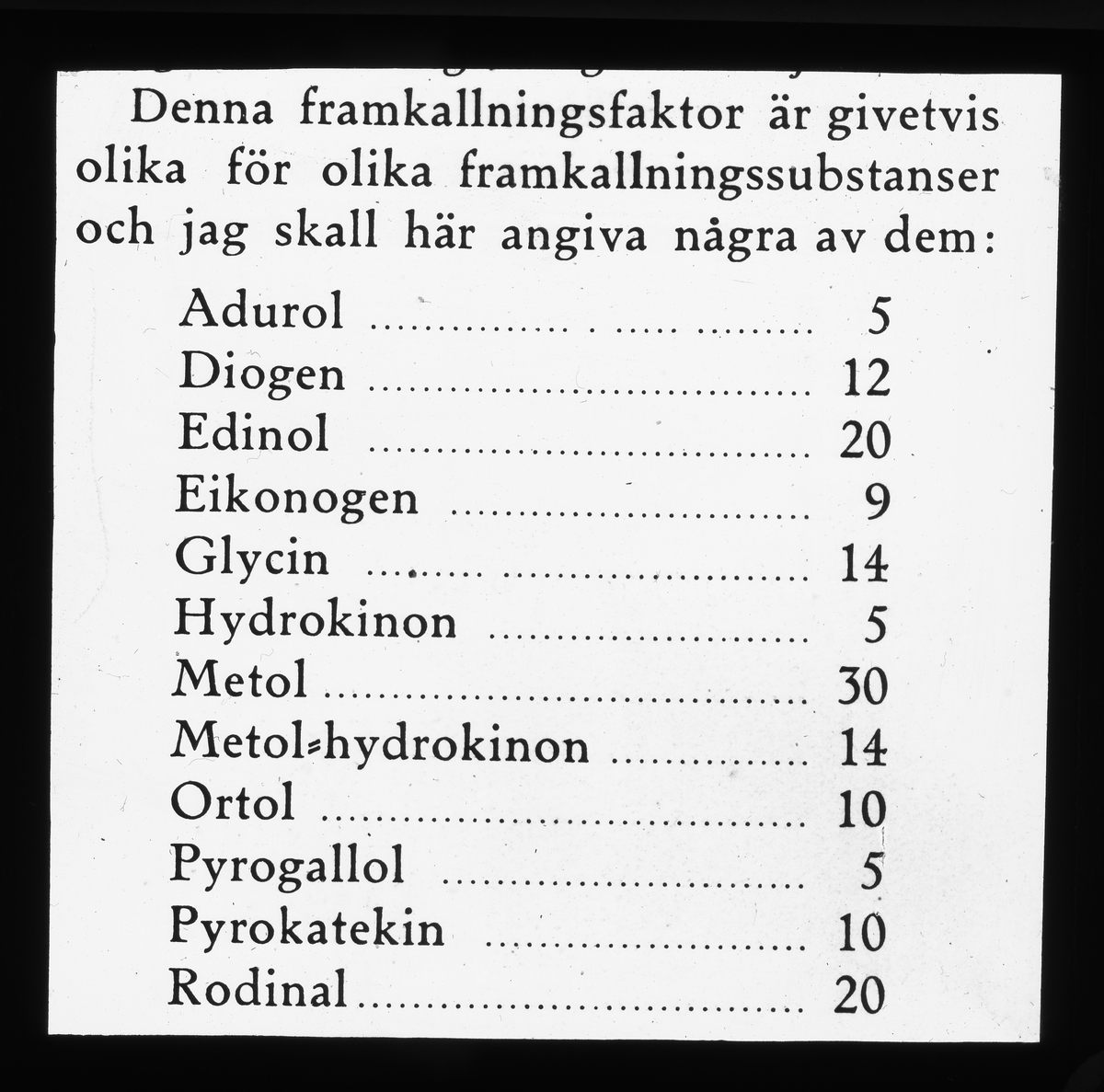Skioptikonbild från Institutionen för fotografi vid Kungliga Tekniska Högskolan. Använd av professor Helmer Bäckström som föreläsningsmaterial. Bäckström var Sveriges första professor i fotografi vid Kungliga Tekniska Högskolan i Stockholm 1948-1958.