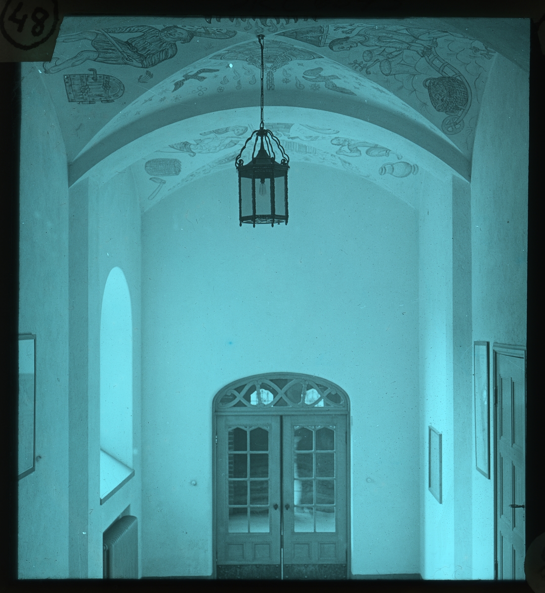 Skioptikonbild från Institutionen för fotografi vid Kungliga Tekniska Högskolan. Använd av professor Helmer Bäckström som föreläsningsmaterial. Bäckström var Sveriges första professor i fotografi vid Kungliga Tekniska Högskolan i Stockholm 1948-1958.