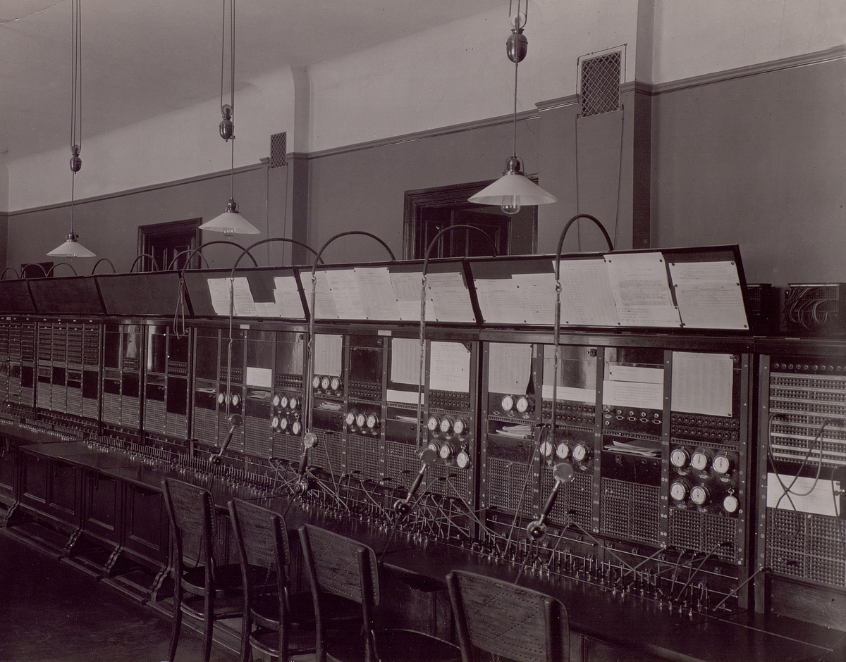 Kristinehamn telefonstation Omkring 1925. Telefonsal.