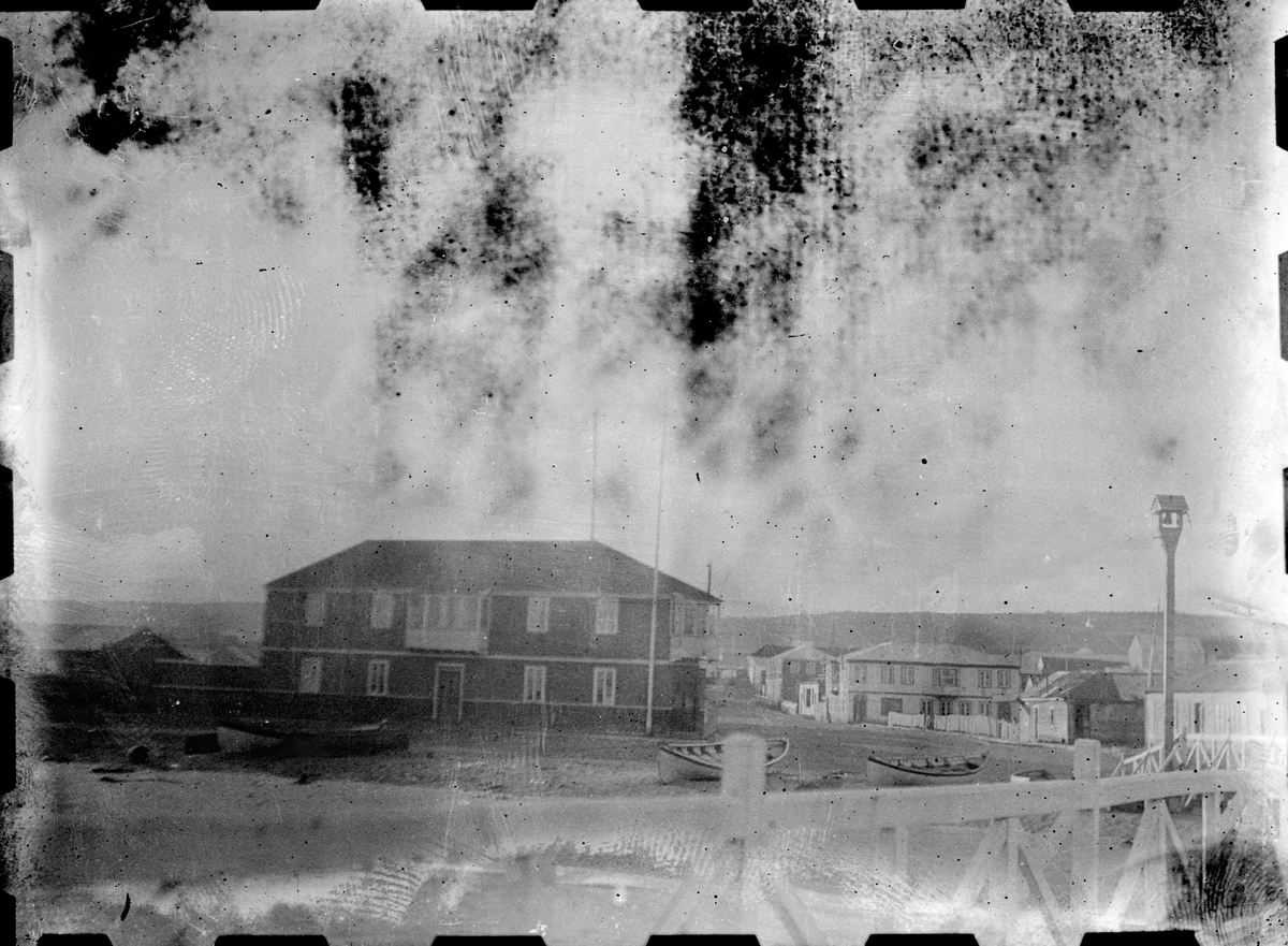 Fotografi från Eldslandet. Motiv av hus i stad.