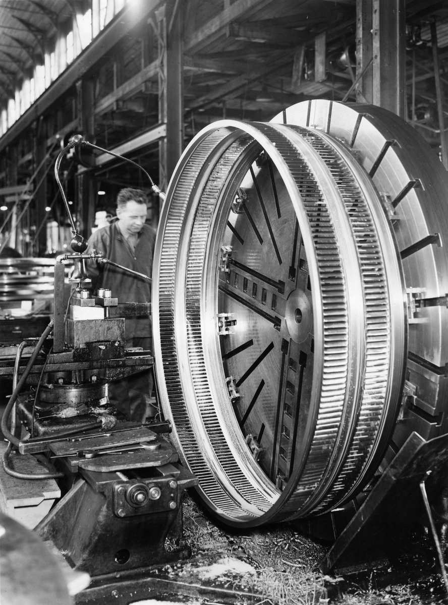 Svarvning av skovelring till 33 000 kw STAL-turbin, 1947.