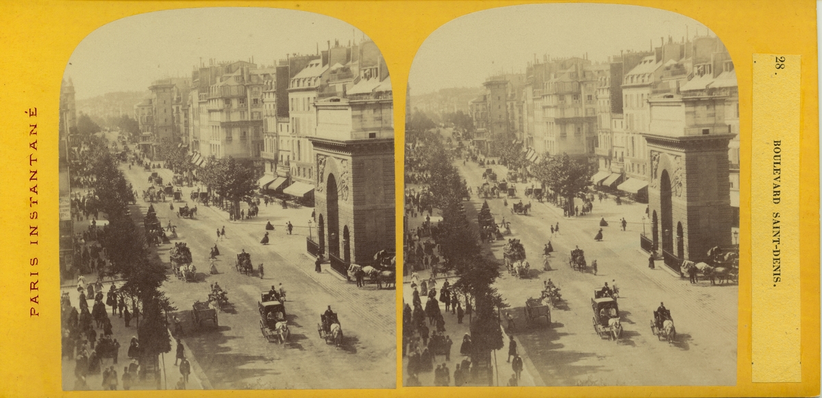 Stereobild med motiv från gatan Boulevard Saint-Dents, Paris.