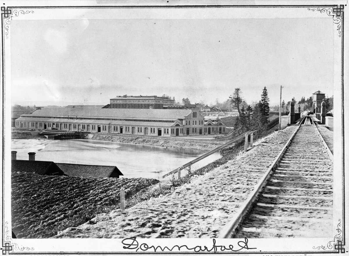 Stora Kopparbergs bergslag. Järnverksbron över Dalälven vid den nedersta av Tunaforsarna med Domnarvets Järnverk.