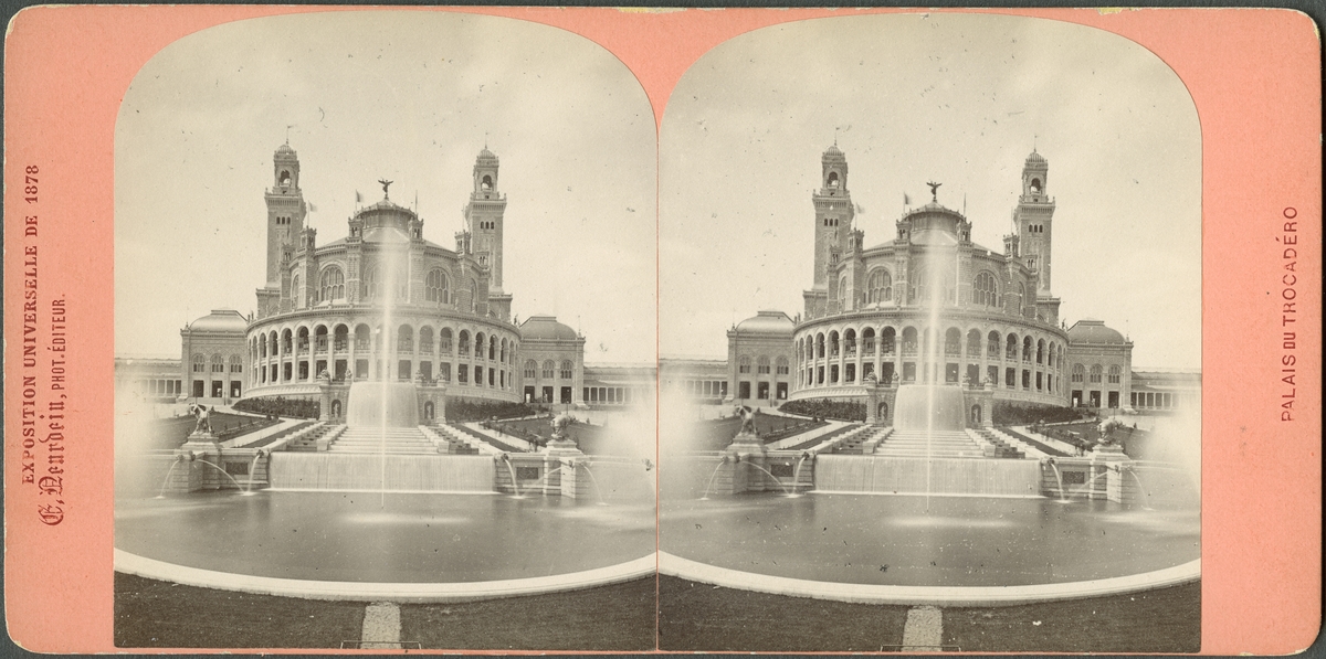Stereobild med motiv av Palais du Trocadéro vid Världsutställningen i Paris 1878.