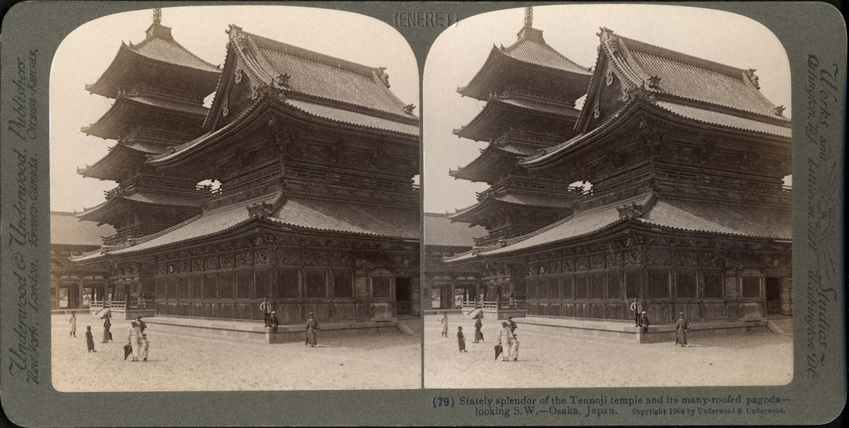 Stereobild av Tennojtemplet, Osaka, Japan.
