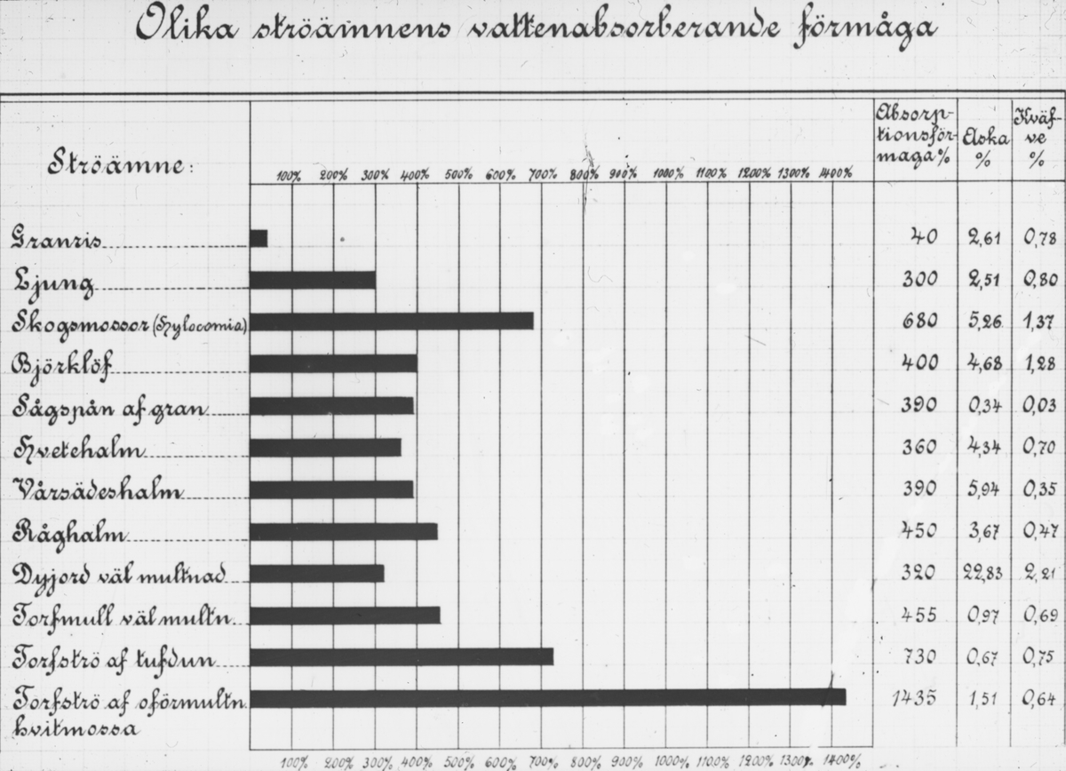 Skioptikonbild. Diagram över olika ströämnens vattenabsorberande förmåga.