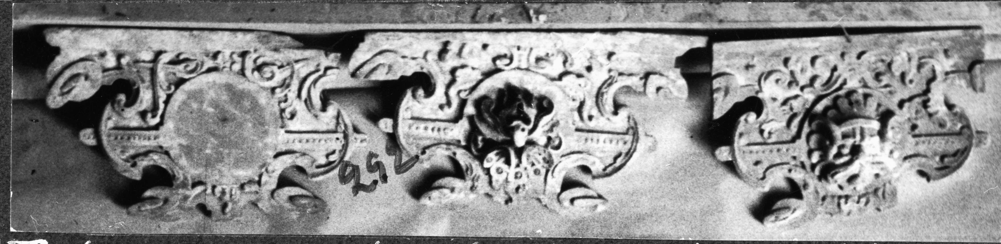 Delar av understycken till läktaren, vilka åter sattes upp på sina platser efter det de kompletterats.