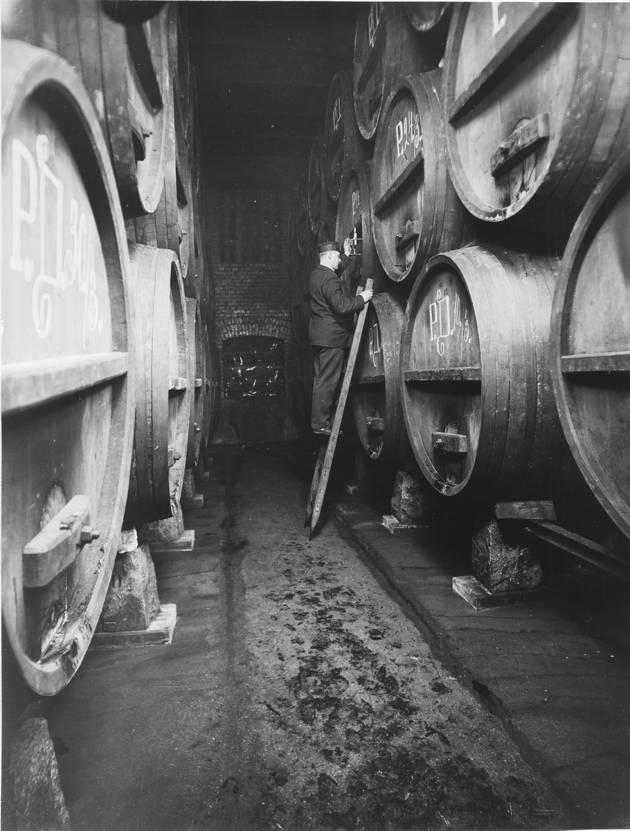 Gustaf Piehls Nya Bryggeri. Interiör från lagringslokal.