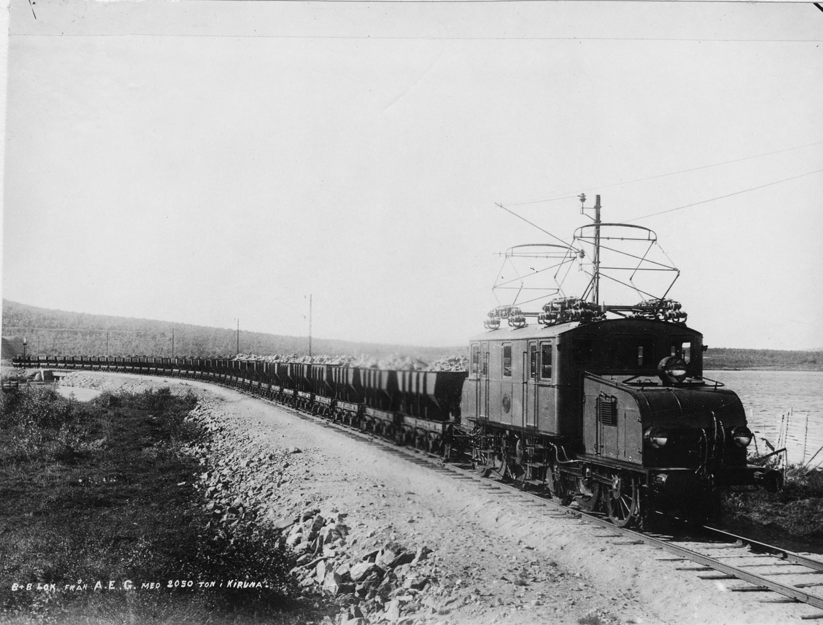 Järnmalmsfält. B+B lok från A.E.G. med 2050 ton i Kiruna.