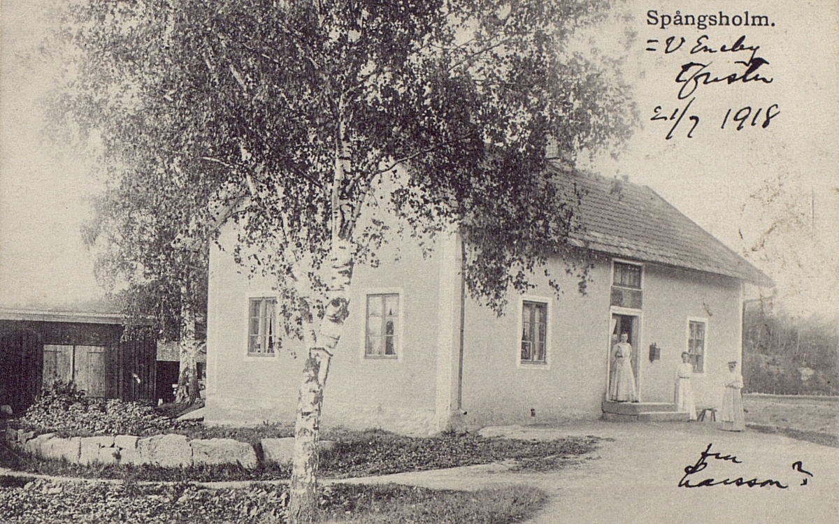 Vykort. Spångsholm, Västra Eneby socken, Kinda kommun. Telefonstation 21/9 1918.