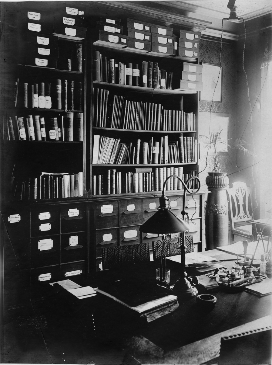 Svenskt Industri- och Handelsmuseum. Regeringsgatan 40, Stockholm. Föreståndarens (sekreterarens) rum i museet. Föreståndaren var 1900-1909 Professor Klas Sondén.