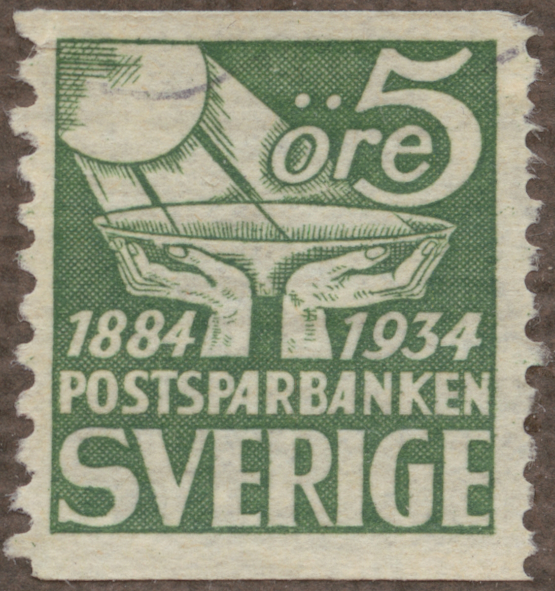 Frimärke från Sverige, 1933. Motiv av Symbolisk bild Postsparbanken 50 år 1884-1934.