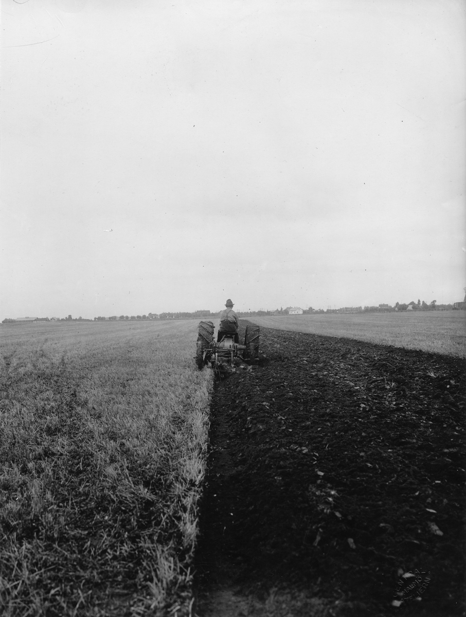 Fordonstraktor med plog.