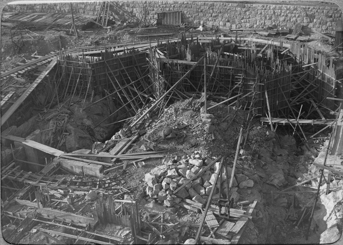 Byggande av Stockholms Elektricitetsverk i Värtan 12 april 1908.