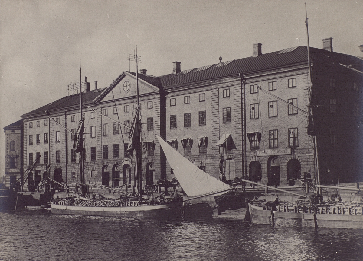 Göteborg Ostindiska Kompaniets hus där telegraf station var inrymd 1 tr till höger (fönster med markiser). De första interurbana telegraflinjerna drogs in till denna station 1889-93. Exteriör.