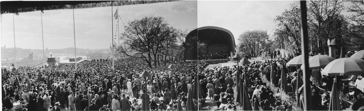 Uppförandet av skådespelet "Grand Prix 1901" under Djurgårdsmässan 1939 på Solliden, Skansen, lördagen den 21 maj. En Cadillac, modell 1904 från Nordiska museet (syns på scen) och en Buick, modell 1906 deltog.