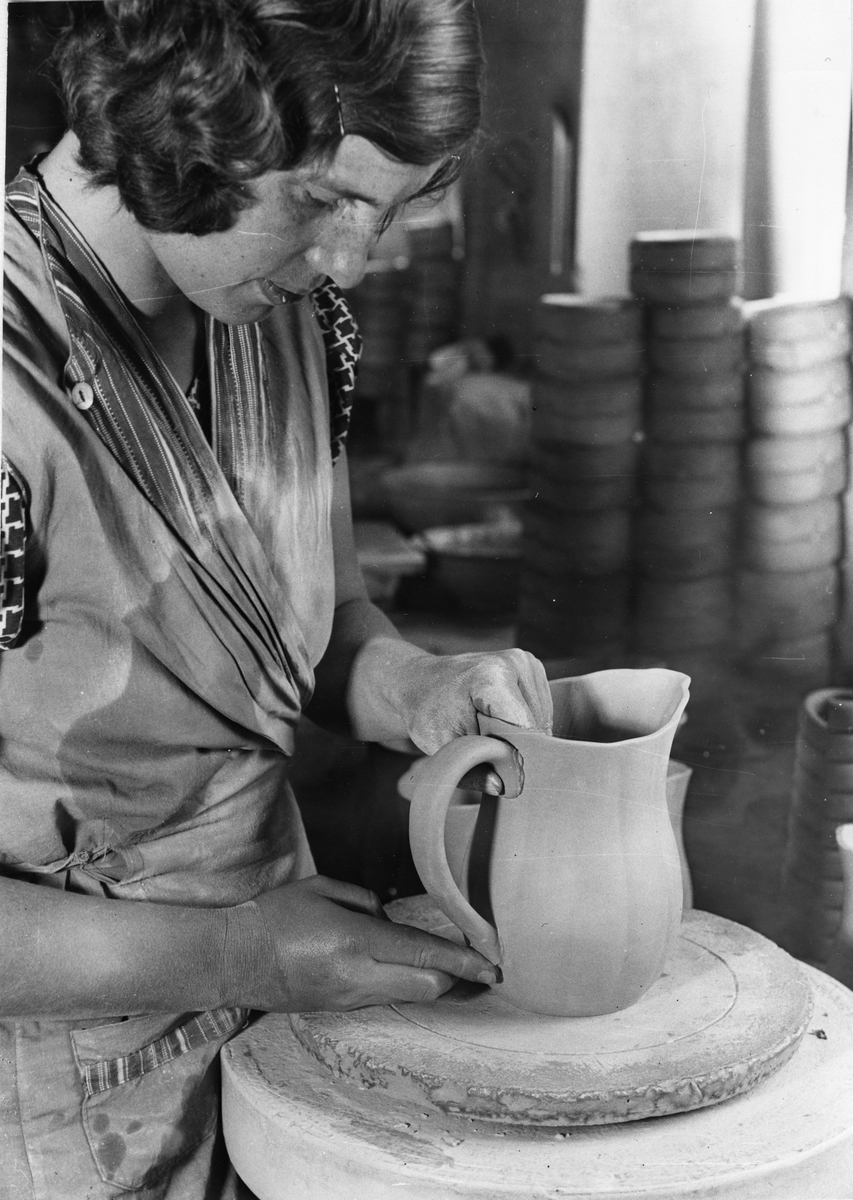 Gustavsbergs Porslinsfabrik. Örat sättes fast på en tillbringare.