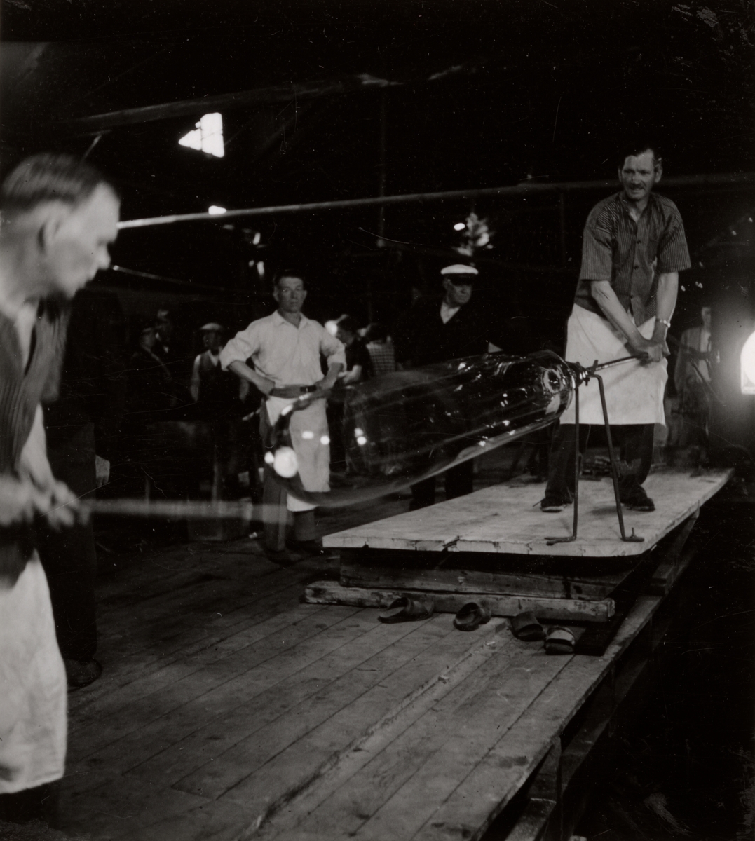 Fönsterglasblåsning i samband med filmning den 12 juni 1941. Anläggning av valsen.