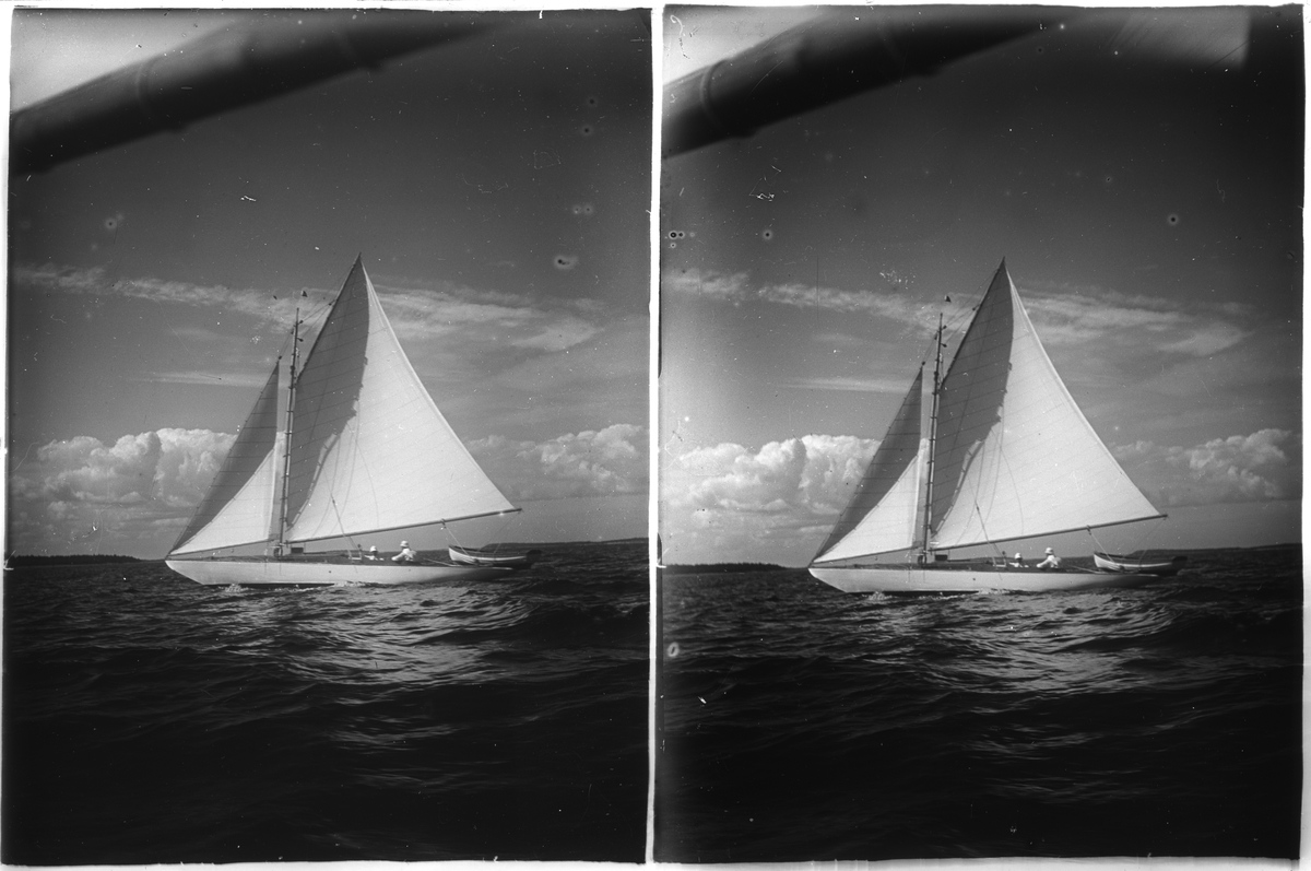Stereonegativ med motiv av segelbåt.