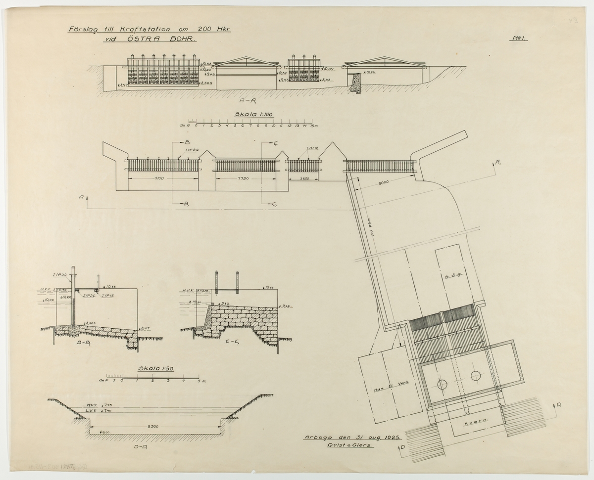 Ritning över förslag till kraftstation vid Östra Bohr (Östra Bor).