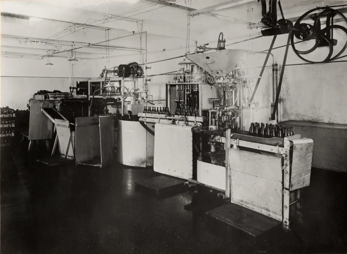 Nyköping Bryggeri Aktiebolag. Interiör av skölj- och tappningaanläggningen 1917. Maskiner av Pindstofte's fabrikat.