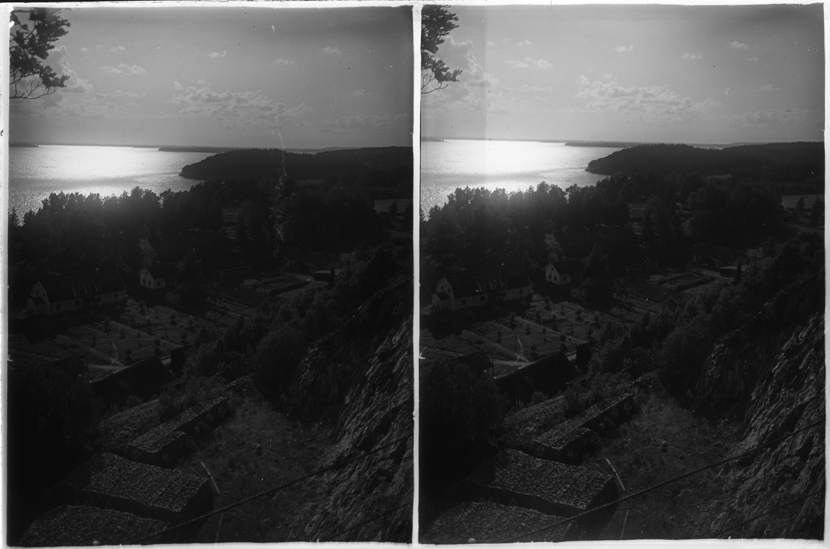 Stereonegativ, vy över vattnet, okänd plats. Möjligen Stockholms skärgård.