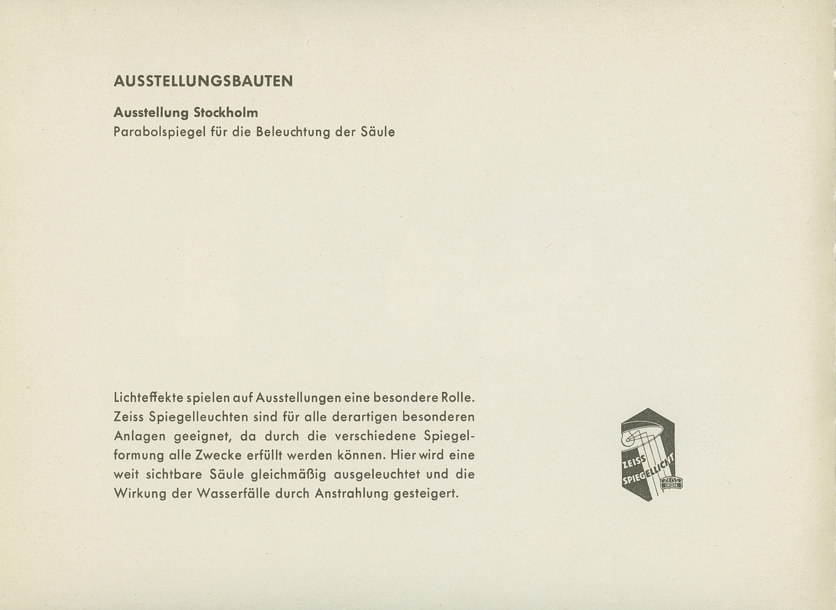 Bild ur boken "Zeiss Spiegellicht System Zeiss-Wiscott in der Architektur : eine Sammlung durchgeführter Beleuchtungsanlagen". Boken gavs ut av Berlin-Zehlendorf : Zeiss Ikon A.G., Goerzwerk, 1937.