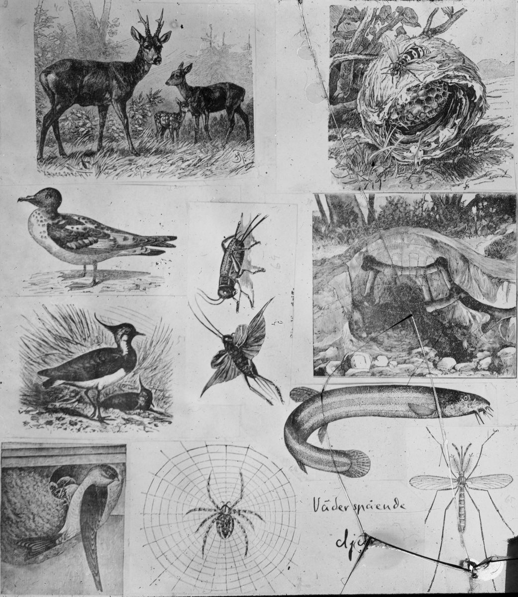 Skioptikonbild med motiv rörande olika typer av väderfenomen. Väderspående djur.