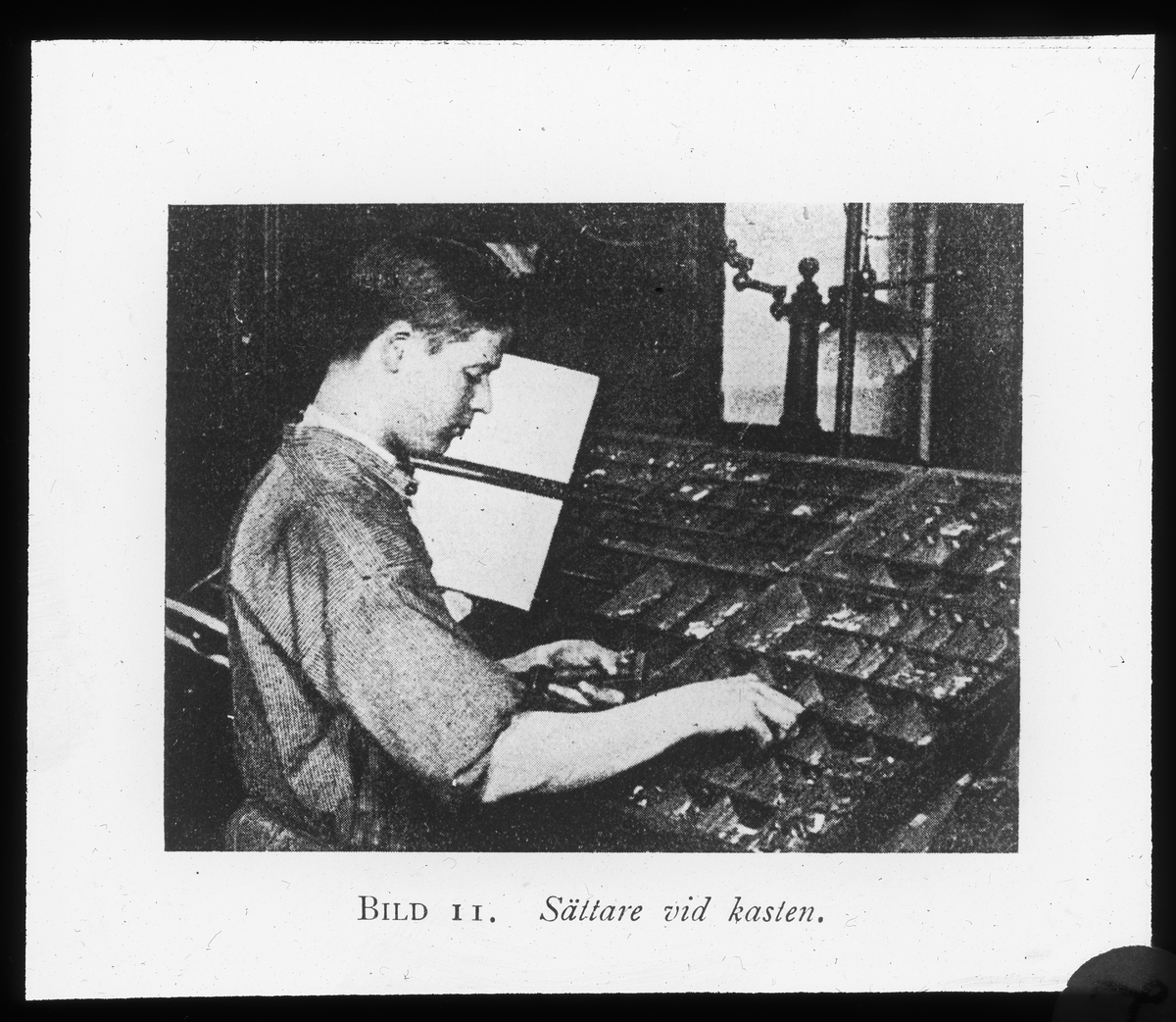 Skioptikonbild från Institutionen för fotografi vid Kungliga Tekniska Högskolan. Använd av professor Helmer Bäckström som föreläsningsmaterial. Bäckström var Sveriges första professor i fotografi vid Kungliga Tekniska Högskolan i Stockholm 1948-1958.