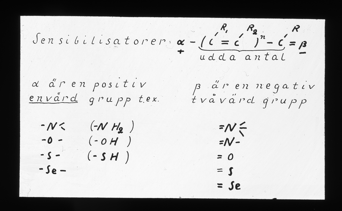 Skioptikonbild från Institutionen för fotografi vid Kungliga Tekniska Högskolan. Använd av professor Helmer Bäckström som föreläsningsmaterial. Bäckström var Sveriges första professor i fotografi vid Kungliga Tekniska Högskolan i Stockholm 1948-1958.