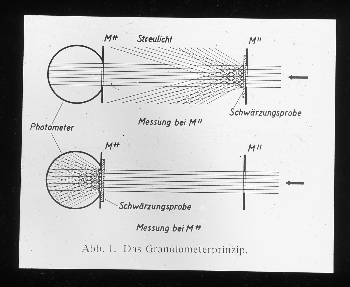 Skioptikonbild från Institutionen för fotografi vid Kungliga Tekniska Högskolan. Använd av professor Helmer Bäckström som föreläsningsmaterial. Bäckström var Sveriges första professor i fotografi vid Kungliga Tekniska Högskolan i Stockholm 1948-1958.