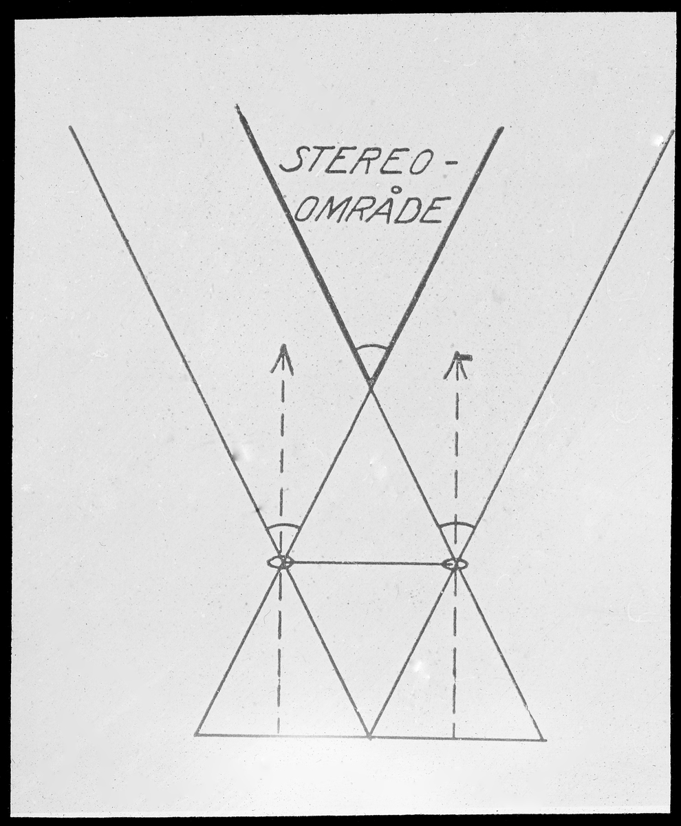 Skioptikonbild från institutionen för fotografi vid Kungliga Tekniska Högskolan. Använd av professor Helmer Bäckström som föreläsningsmaterial. Bäckström var Sveriges första professor i fotografi vid Kungliga Tekniska Högskolan i Stockholm 1948-1958. Motiv föreställande stereoområde.