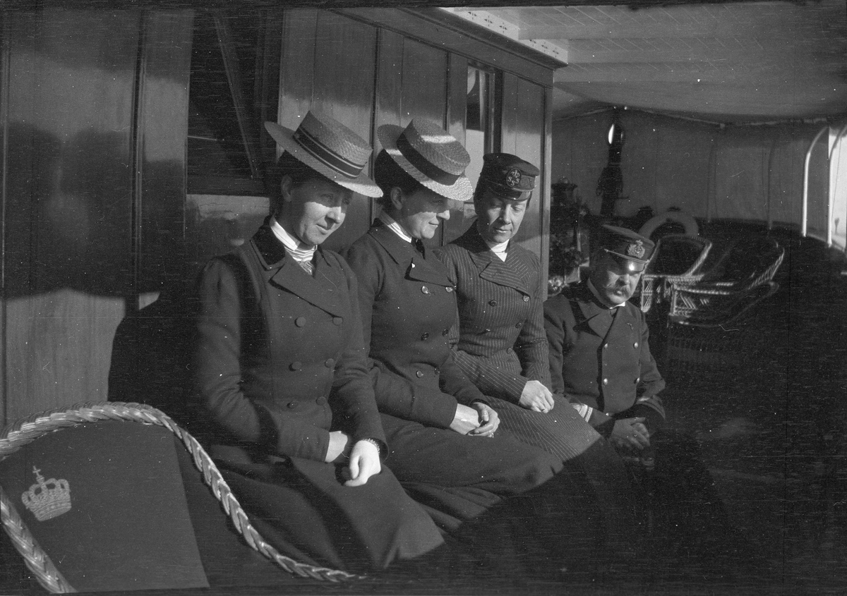 Drottning Victoria bilder. Drottning Victoria på båt med kapten? och två flickor. HSM Drott?