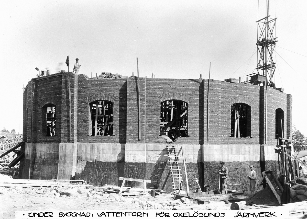 Byggherre: Byggnadsaktiebolaget Contractor, Stockholm. Under byggnad: Vattentorn för Oxelösunds Järnverk.