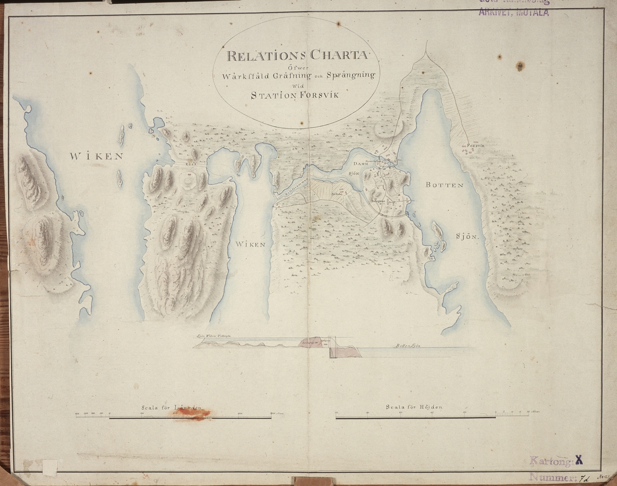 R. W. Holmström. Relationskarta över verkställd sprängning vid Forsvik station1810-1812. Enligt Göta kanalbolagets uppgifter fanns Holmström med under åren 1810-1812 och ritade relationskartor över arbeten i både Västergötland och Östergötland. Det var i Forsvik grävningarna började och 1813 stog den första av de 58 slussarna klar där.